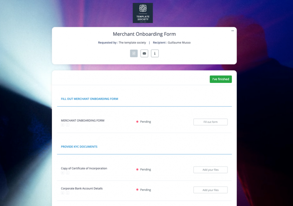 Teams run their merchant onboarding process using Clustdoc to make sure every merchant is onboarded the same way, without missing steps or chasing information by email.