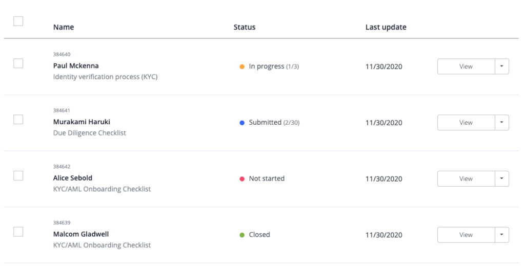 It allows you to establish a company-wide system for onboarding new clients and also serves as a centralized repository for all KYC documents, forms, and client records.