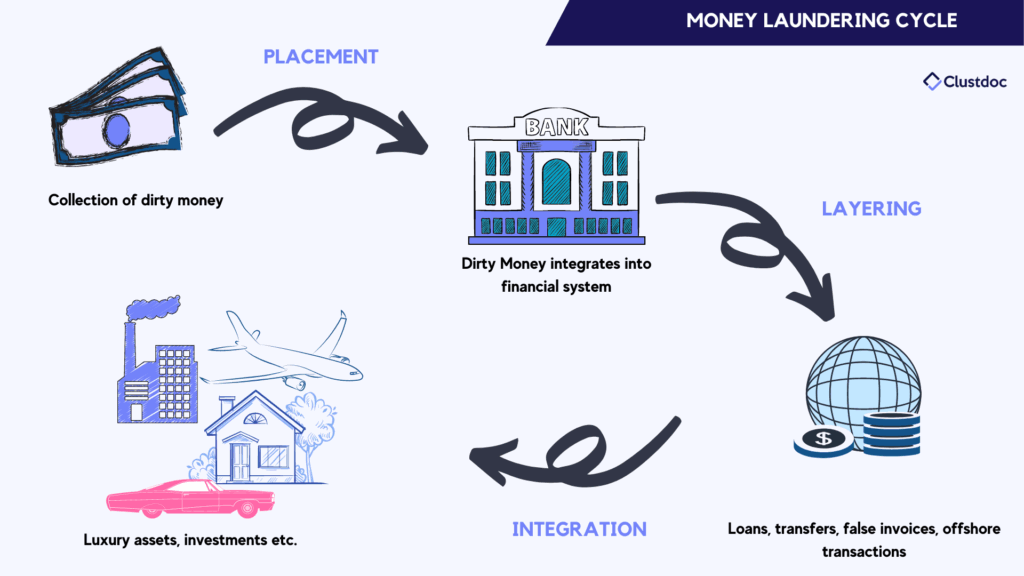 According to the UN Office of Drugs and Crime, a typical money laundering scenario involves 3 main steps: