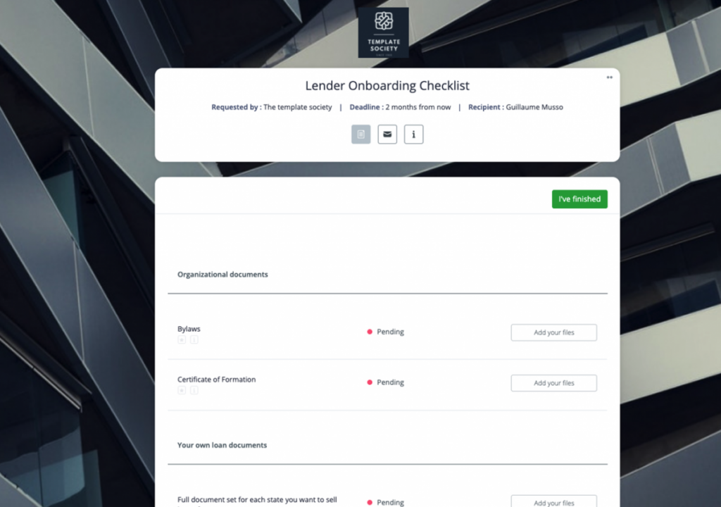 Clustdoc’s lender onboarding checklist will simplify document collection and guide new lenders through the document submission process.