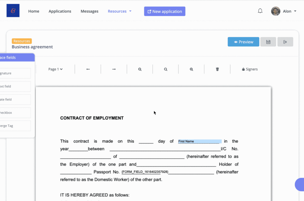 See the below video to know how you can automate your onboarding workflow with merge fields.
