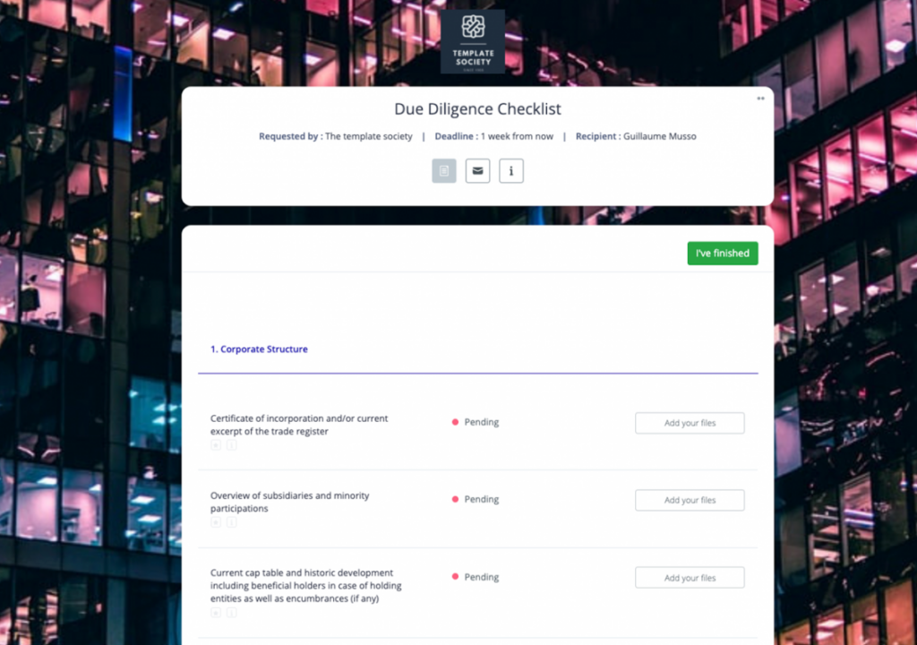 This KYC/KYB document checklist from Clustdoc will let you create an automated framework for verifying customers and sharing company information with them.