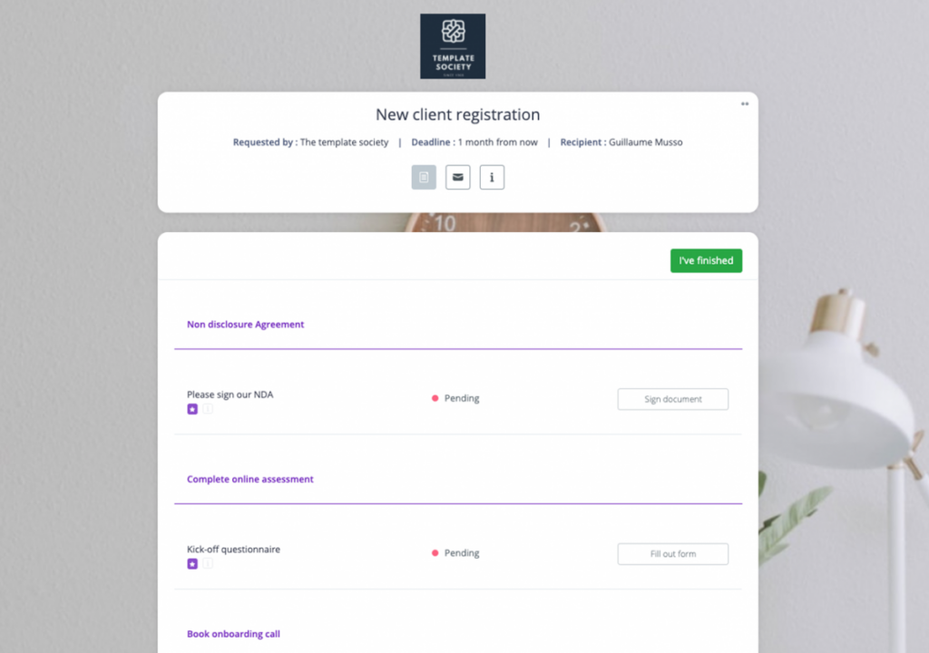 When onboarding a new client it is crucial to collect KYC documents as well as guide them through your company’s processes and policies.