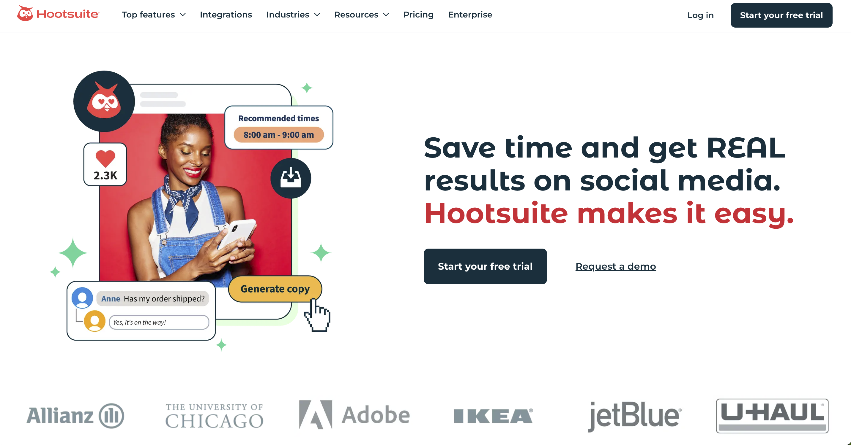 HootSuite is extremely useful when managing several social media accounts at once. You can schedule, pilot and automate your posts across all your preferred social networks from a single place and also add team members to help you engage with your audience. My preferred feature is the performance measurement! Definitely essential to improve your Social media Marketing Strategy.