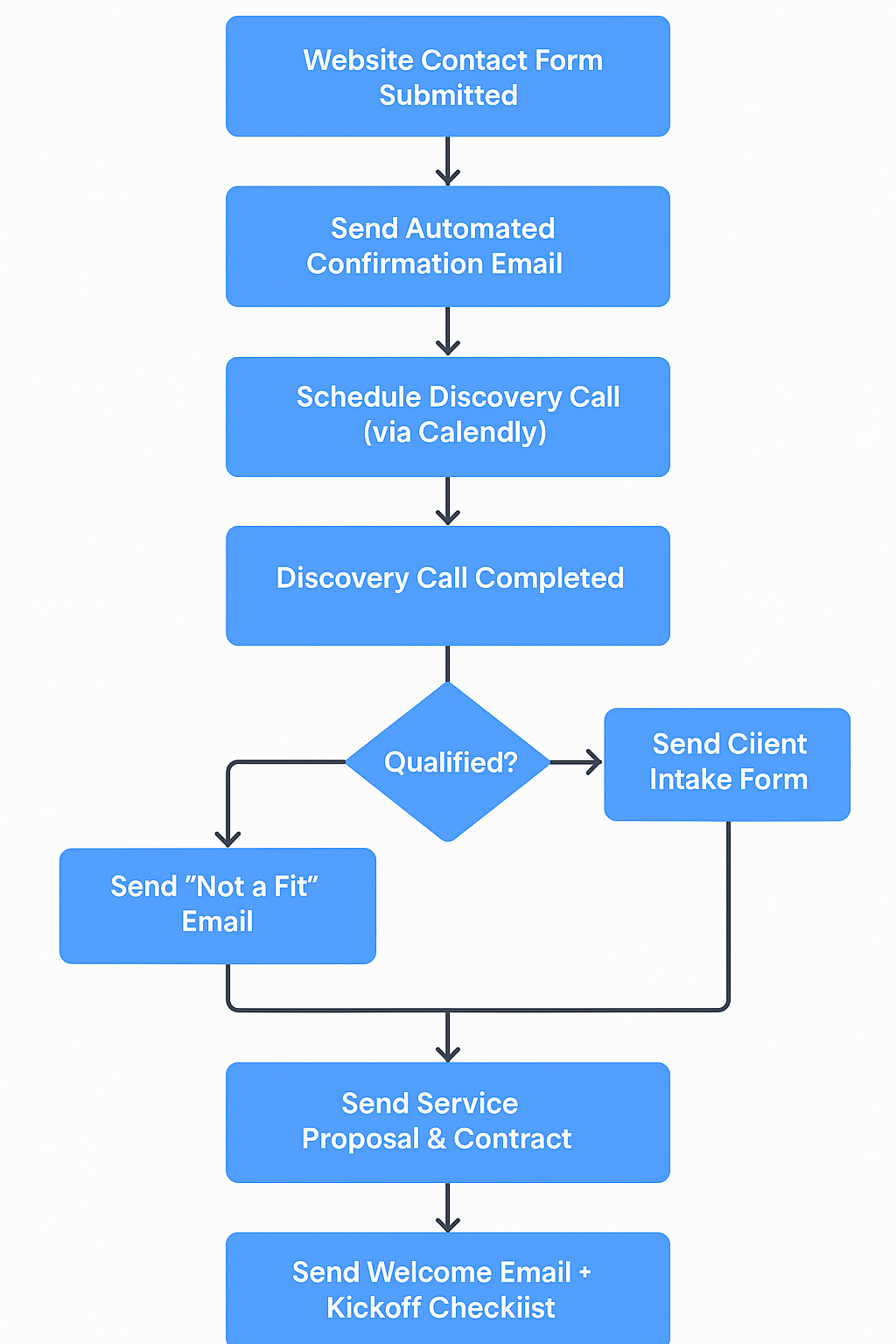 Before you can automate anything, you need to understand exactly how your current client intake process works. Mapping your existing workflow helps you visualize each touchpoint, identify bottlenecks, and determine where automation can add the most value.