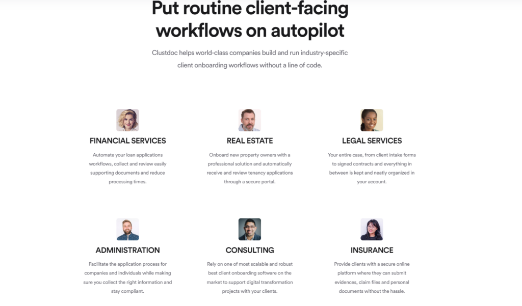 Many teams use Clustdoc to orchestrate, run and manage repeated industry-specific onboarding workflows with clients or stakeholders: