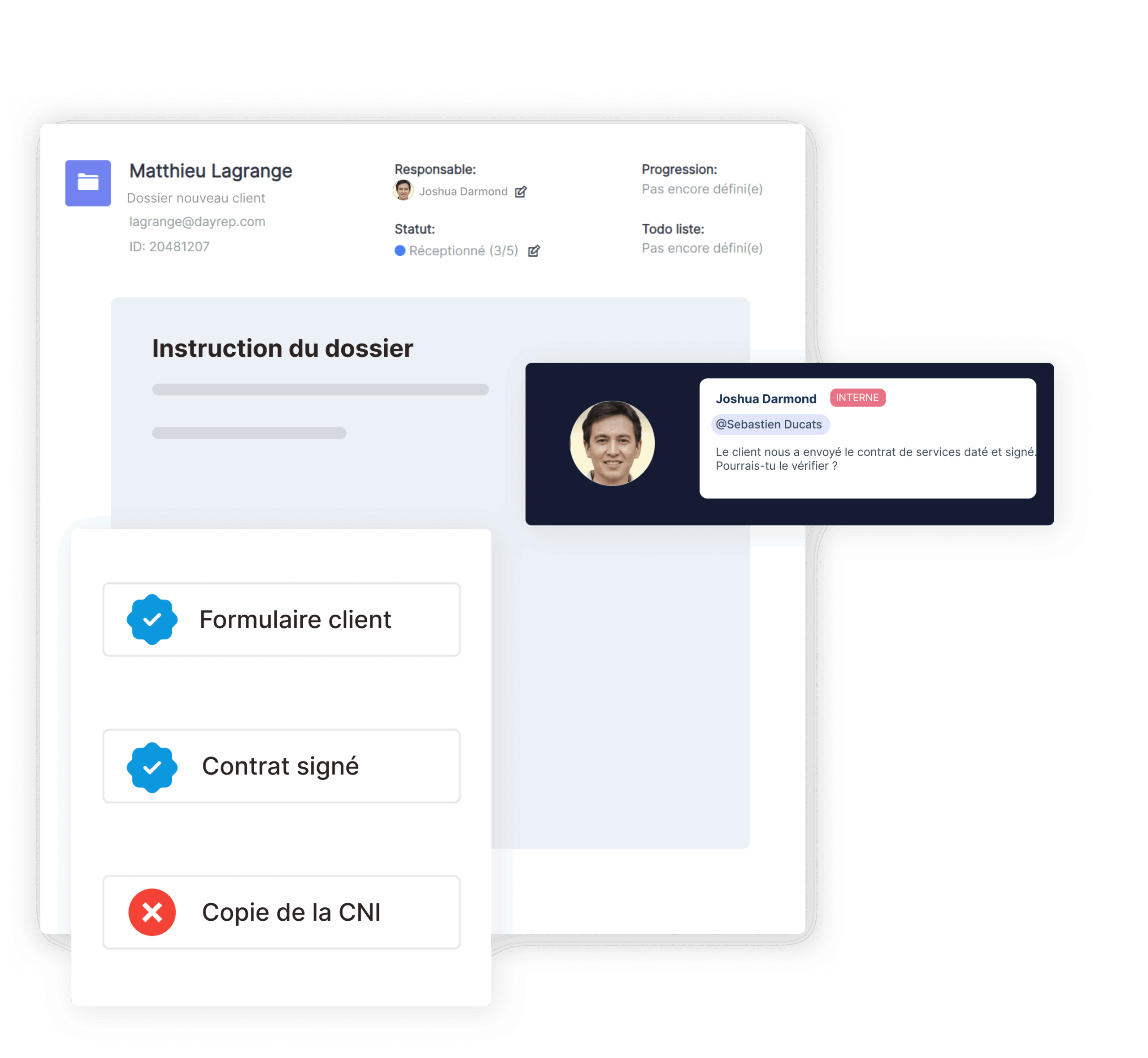 Vos clients bénéficient d’un suivi plus clair, et votre cabinet améliore la qualité de son assistance en gardant une trace fiable de chaque étape du dossier client.