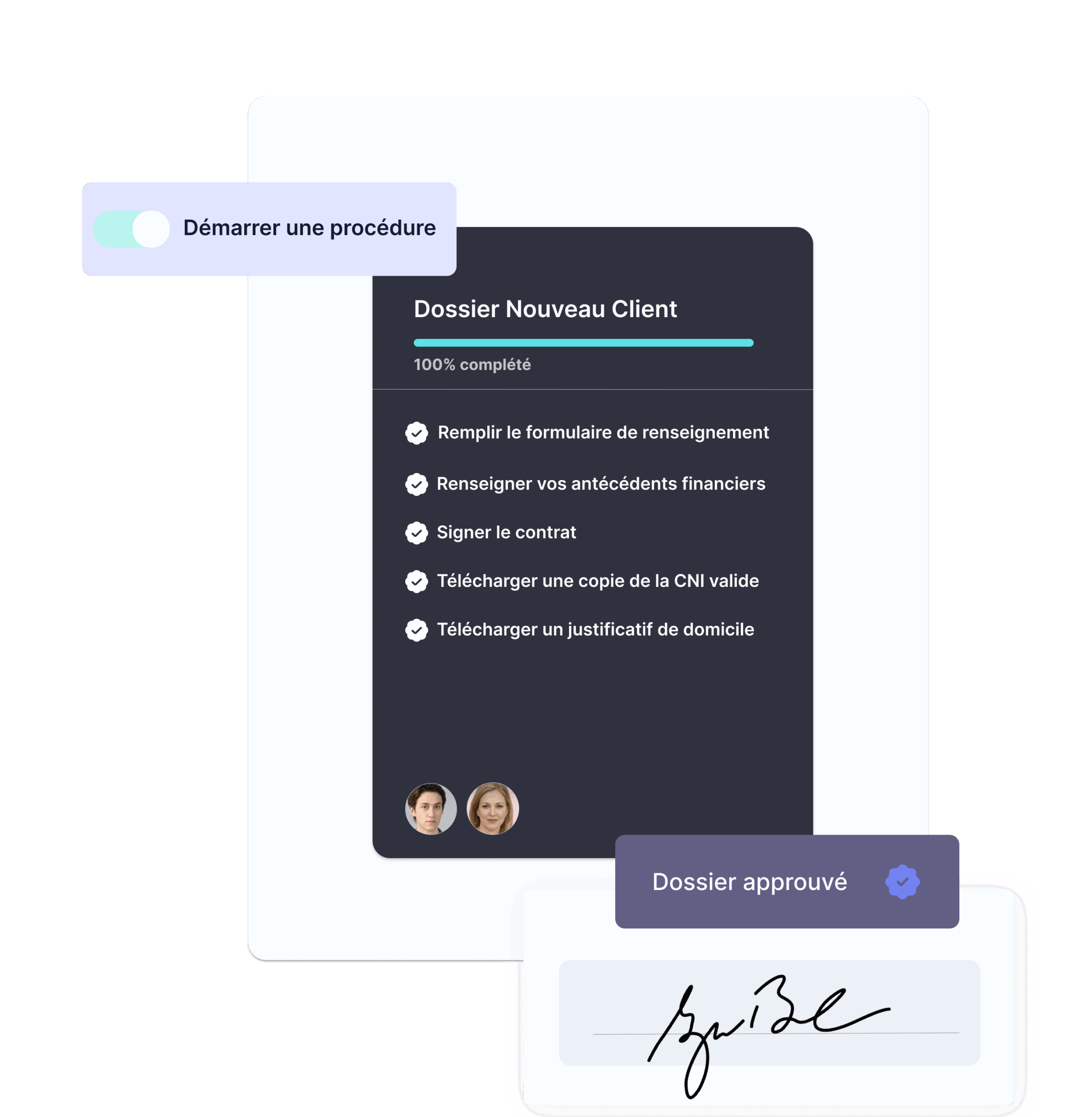 Centralisez votre processus d'onboarding client pour gagner du temps, alléger vos équipes et simplifier l'entrée en relation de vos contacts.